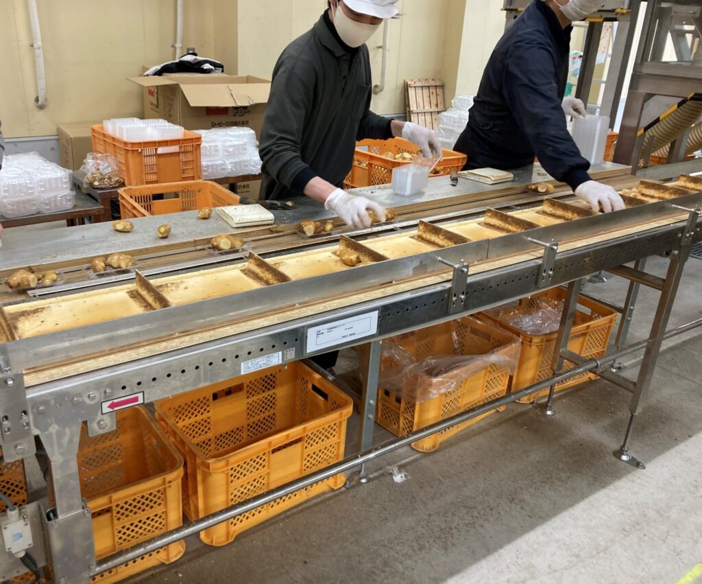 | 作業内容 | ショウガのサイズ等をチェックするレーン作業とパック詰めされたショウガを段ボールに梱包をする作業 |